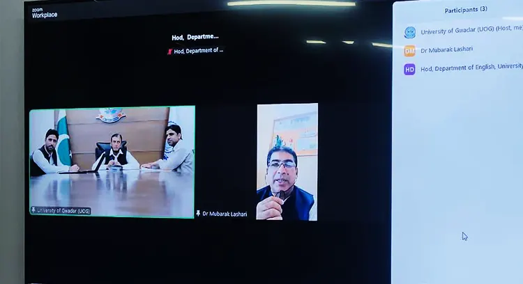 The University of Gwadar convened the Third Board of Studies meeting of the Department of English on 27th February 2026 at the conference hall of the Pak China Technical & Vocational Institute (PCT&VI). University of Gwadar. The meeting was chaired by Prof. Dr. Jan Mohammad, Dean of the Faculty of Management Sciences, Commerce, and Social Sciences. Participants included Mr. Muhammad Farooq, Chairperson, Department of English; Dr. Mubarak Lashari, Associate Professor, Department of English, University of Sindh, and Dr. Waseem Malik, Associate Professor, Department of English, University of Sindh (who participated virtually). Mr. Mubarak Ali, a faculty member of the English Department, was present to contribute to the proceedings.