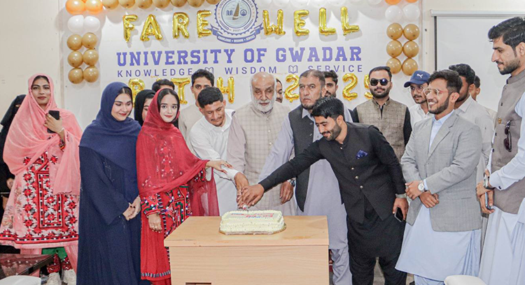 Junior students from the Department of Management Sciences and Commerce organized a warm and lively farewell ceremony to honor their outgoing seniors at the University of Gwadar. Vice Chancellor Prof. Dr. Abdul Razzaq Sabir, while addressing the gathering, praised the seniors for their dedication and achievements. He encouraged them to stay committed to learning and to represent the university with pride in their future endeavors. Prof. Dr. Jan Muhammad, Dean Faculty of Social Sciences, congratulated the graduating students and urged them to carry forward the spirit of hard work and service. He reminded them that education is a continuous journey that shapes both character and purpose. The event featured speeches, poetry, performances, and a nostalgic video highlighting memorable moments of the seniors’ academic journey. Senior representatives also shared their gratitude and reflections.