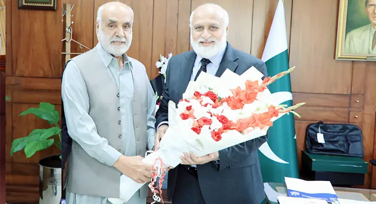 The Vice Chancellor of the University of Gwadar, Prof Dr. Abdul Razzaq Sabir, paid an official visit to the Higher Education Commission (HEC) in Islamabad, where he met with the newly appointed Chairman, Prof Dr. Niaz Ahmed Akhtar, at his office. The Vice Chancellor UG congratulated him on assuming the office of Chairman HEC and presented a bouquet as a gesture of goodwill and best wishes. During the meeting, the Vice Chancellor provided a comprehensive briefing on the overall academic progress of the University of Gwadar, ongoing administrative reforms, current development schemes, and future strategic plans. He highlighted the key challenges faced by a newly established public sector university, particularly the recruitment of qualified faculty, infrastructure development of the permanent campus, promotion of a research culture, launch of new academic programs, and provision of modern educational facilities for students.